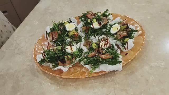 Этот Салат украсит Ваш Новогодний стол !!! ИНГРЕДИЕНТЫ: Рисовая бумага - 1-2 шт. Красная рыба солёная - 100 грамм Авокадо - 1 шт. Сок лимона - 1 ч. ложка Руккола - 75 грамм Для заправки: Оливковое масло - 2 ст. ложки Мед - 0,5 ч. ложки Соевый соус - 1 ст. ложку Франц. горчица - 1 ч. ложка Для украшения: Перепелиные яйца Бальзамический соус Кунжут Оцените видео! 👍 - Буду очень рад и это поможет развитию канала. НАПИСАТЬ ОТЗЫВ или задать вопрос о рецепте. Я буду очень рада ответить Вам. 📢 Вы также можете поделиться этим видео со своими друзьями в социальных сетях, чтобы они знали, какое блюдо Вы хотите приготовить следующим. Подписывайтесь на канал, жмите колокольчик, чтобы не пропустить новое видео. ТАКЖЕ на ТЕЛЕГРАММ канал: https://t.me/sadis_c_nami ЕСЛИ есть не имоверное желание ПОМОЧЬ Каналу: 2200 7004 1051 3153