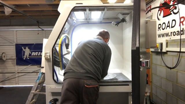 Vapour Blasting motorcycle and car components using a Vixen Aquablast 1215