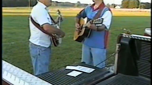 John and Johhny Cornett doing a little rehearsing before a show at the squaredance barn in Scottsburg in 1998.