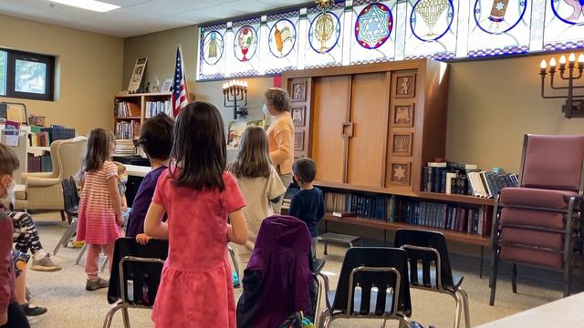 Rabbi Solomon reads her 1st book - Thank You, Modeh Ani - to children at her congregation