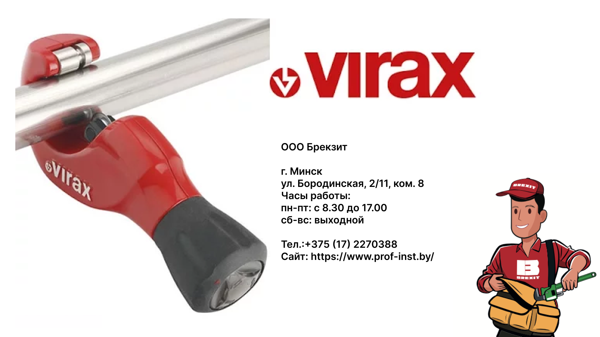 Купить роликовый труборез https://www.prof-inst.by/catalog/truborezy_nozhnicy_dlya_trub/ ┈┈┈┈┈┈┈┈┈┈┈┈┈┈┈ Профессиональный труборез VIRAX ZR 35 с удобной рукояткой и современным дизайном : ✓Предназначен для резки всех видов труб. ✓Режущий роликовый нож изготовлен из высококачественной закаленной стали. ✓Быстрая смена роликового ножа без инструмента. ✓В комплект входит запасной режущий нож, а также встроен гратосниматель. Разработан на заводе VIRAX во Франции. ┈┈┈┈┈┈┈┈┈┈┈┈┈┈┈ Не забудьте подписаться на мой канал. Для меня это очень важно. Так я смогу понять, что мои видео вам приносят пользу. Ссылка на канал: https://www.youtube.com/channel/UC7BZc-iy_KVgSyES67WJ_6Q?view_as=subscriber ┈┈┈┈┈┈┈┈┈┈┈┈┈┈┈ Меня зовут Сергей Жигалко, учредитель компании ПрофИнст Строй. С 2001 года занимемся продажей профессионального инструмента и оборудования для монтажа систем отопления и водоснабжения. Наша компания занимается продажей оборудование для промывки, прочистки, телеинспекции трубопровода внутренних и внешних сетей. ▸Мы оказываем услуги по ремонту инструмента. ▸Сдаем инструмент в Аренду. ▸Проводим БЕСПЛАТНОЕ обучение работе на нашем оборудовании. ▸Честная гарантия 36 месяцев ▸Для наших клиентов, у нас есть ПОДМЕННЫЕ резьбонарезные станки на время ремонта ┈┈┈┈┈┈┈┈┈┈┈┈┈┈┈ Купить профессиональный инструмент для качественного нарезания резьбы на стальных трубах можно в нашем интернет-магазине: https://www.prof-inst.by/arenda ┈┈┈┈┈┈┈┈┈┈┈┈┈┈┈ Ссылка на аренду оборудования: https://www.prof-inst.by/arenda Мой канал посвящен Обучению работе, на профессиональном инструменте и оборудовании. С помощью моих видео Вы сможете получить нужные знания, для работы на профессиональном инструменте и оборудовании, даже если Вы ранее с ним не сталкивались. ┈┈┈┈┈┈┈┈┈┈┈┈┈┈┈ Наши офисы: ОФИС В БЕЛАРУСИ: Мы находимся по Адресу: улица Бородинская, 2/11, ком. 8 Часы работы: пн-пт: с 8.30 до 17.00 сб-вс: выходной Ссылка на схему проезда: https://www.prof-inst.by/contacts Тел.:+375 (17) 2270388 Сайт: https://www.prof-inst.by/ E-mail: youtube@brexit.by Присоединяйтесь к нам в соцсетях: https://www.instagram.com/profinstby/ https://vk.com/profinst https://www.facebook.com/profinst ОФИС В РОССИИ: Мы находимся по Адресу: 125438, г. Москва, ул. Онежская, д.15 Часы работы: пн-пт: с 8.30 до 17.00 Обед: с 12-00 до 13-00 сб-вс: выходной Ссылка на схему проезда: https://discount-tools.ru/contacts/ Моб/тел: +74991134057 Сайт: https://discount-tools.ru/ E-mail: info@kanuk.su Присоединяйтесь к нам в соцсетях: https://www.instagram.com/discounttools/ https://vk.com/discounttools https://www.facebook.com/discounttoolsru https://plus.google.com/1075326955138. https://plus.google.com/107532695513867101181 _________________________________ BREXIT - оптово-розничный магазин инструмента и оборудования