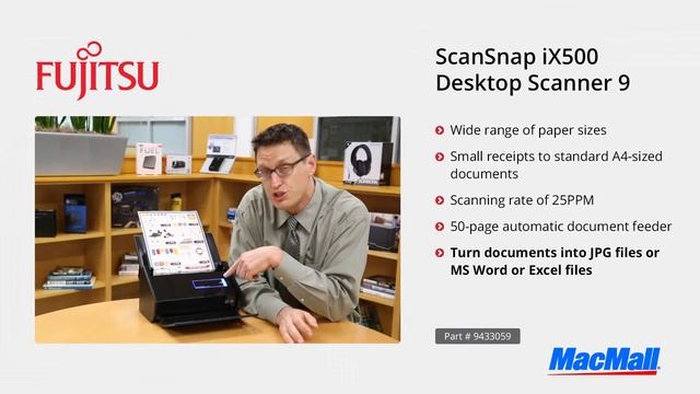 Get the latest Apple tips & news from the helpful team at MacMall! Check out this product at: http://bit.ly/1uLI5v9 About This Product: The ScanSnap iX500 provides PC and Mac users an effective way to greatly reduce paper clutter, storage space, and security risk associated with unmanaged paperwork at home or office. For even greater accessibility and usefulness, users can scan documents directly to an iOS or Android mobile device or tablet. Connect with MacMall: MacMall on Twitter: http://www.twitter.com/MacMall MacMall on Facebook: http://www.facebook.com/MacMall Shop MacMall: http://www.MacMall.com About MacMall: MacMall is the #1 Apple Direct Reseller. Since 1987, MacMall has been supplying Mac computers, Mac software, iPods, iPad accessories, and more Apple brand products and consumer electronics to consumers, businesses, and creative professionals. Learn more about MacMall at http://www.MacMall.com.
