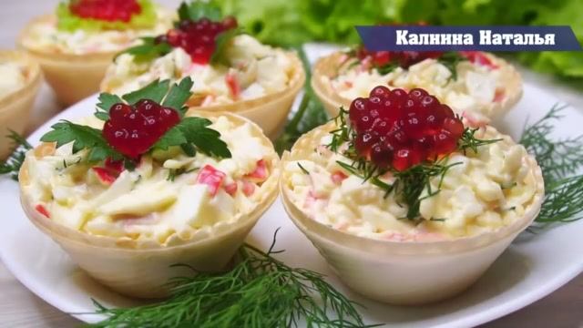 Крабовый салат в тарталетках! Лучшая закуска на скорую руку
