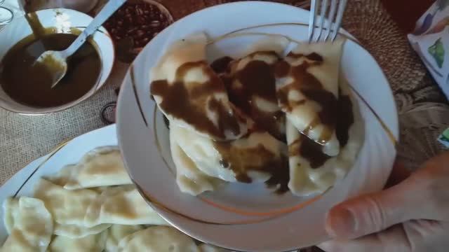 Здравствуйте. Скажете: кто же не ел вареники с творогом? Сладкие, думаю, все ели, со сметаной да с сахаром. А такие, мне кажется, вкушали немногие. ) Тесто: мука - 5 стаканов вода - сколько понадобится соль - щепоть подсолнечное масло - 1-2 стол. ложки Начинка: творог - 1 кг яйца - 4 шт. ореховая трава - щедро, щепоти 2-3 манная крупа - 2 стол. ложки соль - щепоть Соус: нагретое топленое масло - 2 стол. ложки урбеч - 2 стол. ложки. Здравствуйте. Нет же, я не собираюсь изобретать велосипед, как, впрочем, и вареники. Это даже не абсолютно новый революционный рецепт, это вариант общеизвестного рецепта из мест моего детства. А вот в чем разница, лучше определить на вкус. Ну, поехали. Тесто самое тривиальное: мука, вода, щепотка соли и чуточку подсолнечного масла для эластичности. Смешиваю, замешиваю, ощущаю - эластичное, в меру тугое, но вполне удобное для раскатывания. Положу его в мешок и отправлю отдохнуть, построить планы на будущее. А тем временем займусь начинкой. У меня есть килограмм домашнего творога. Он не сухой, значит добавлять в него сметану не придется. Был бы сухой магазинный - положила бы ложечку-две. А вот яйца добавляю, четыре, целиком, не разделяя на белок-желток, все пригодится. Добавляю ореховую траву (люблю добавлять ее в выпечку и творог, но раз никто не спросил, что это за зверь такой, расписывать ее не буду), добавляю щедро, для яркого вкуса. Манку добавить придется. Но не для массы, а чтобы она адсорбировала сыворотку, не то вареники лопнут при варке. И соль, конечно, по вкусу. Теперь хорошо смешиваю до однородности и возвращаюсь к тесту. Тесто делю на части, скатываю колобки и прикрываю силиконовым ковриком, чтобы не сохли. Кроме одного, который буду раскатывать. Задействую скалку и тружусь, пока не получу лист толщиной около 2 -2,5 мм. Теперь черед кольца, наделаю кружочков. Дальше все привычно: на кружок кладу начинку, защипываю край и откладываю на доску, пока закипает вода. Варка как для любых вареников: всплыли - готовы. А подача, думаю, непривычная для большинства. Эти вареники есть положено не со сметаной и не подслащая их. Я их полью соусом. А делается соус просто и быстро, нагреть до таяния топленое масло и размешать в нем урбеч, в равных пропорциях. Вот соус и готов, полью им вареники в тарелках. Сахара, заметьте, ни кристаллика. Но у кого язык повернется, сказать, что вкус плох? Непривычен - соглашусь, но плох - не поверю. ) Вот ощущению непривычного вам вкуса и предадимся. Моим домашним этот вкус не нов и нравится. Приятного аппетита. Буду очень благодарна за ваши отзывы и КОНСТРУКТИВНУЮ критику. Поддержите развитие канала - подпишитесь, поставьте лайк. Спасибо.