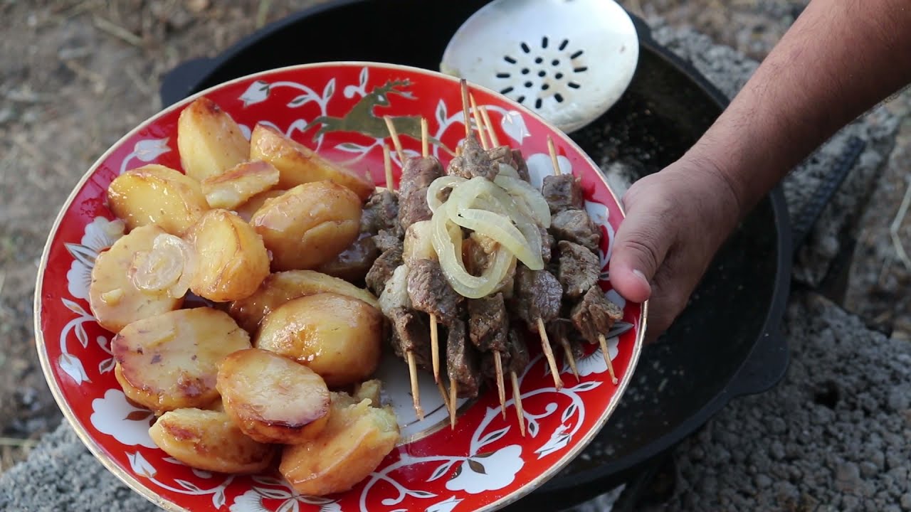 Шашлык в казане__Shish kebab in a cauldron