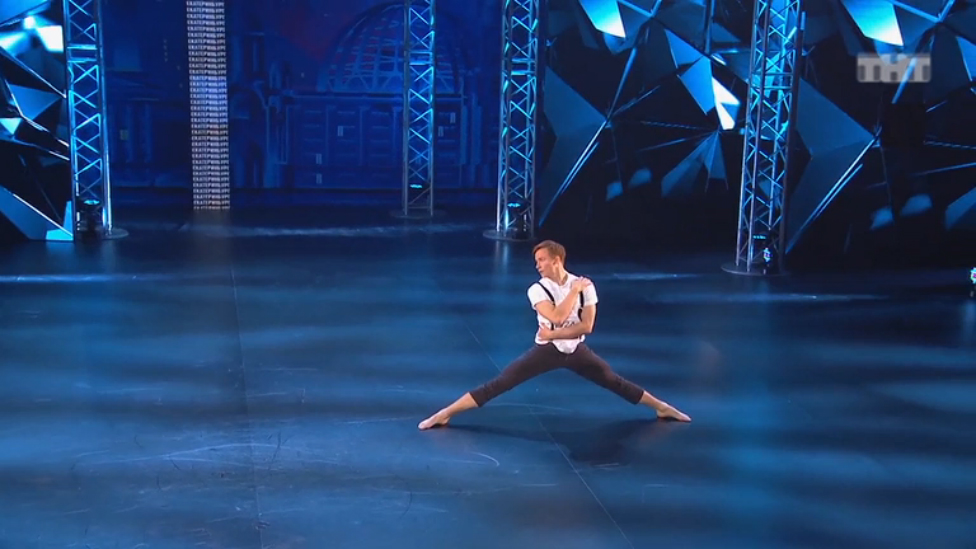 23 года, г.Екатеринбург. Не успел Олег выйти на сцену, как его засмущал Мигель каверзными вопросами. Олег танцует современную хореографию.