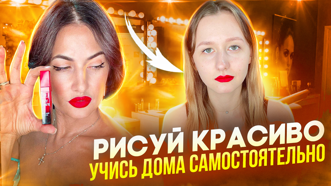 Посмотрим у кого лучше получиться и быстрее!! А может быть Ксюша лучше меня справиться и накрасит красиво губы красной помадой?? Проверим?!