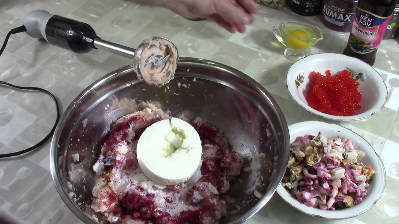Яндекс Дзен - https://dzen.ru/id/620b3fd678237536da3a759a RuTube - https://home.strannik-j.org/channel/24746918/ В контакте https://vk.com/serdukov1974 Рецепт: Филе грудки куриное - 1 кг Сливки 20% - 200 мл Яйцо куриное - 1 шт. Соль нитритная -19 грамм на кг Фосфат - 3 грамма на кг Рыбный или устричный соус - 10 грамм Сушеные водоросли - 5 грамм на кг Имитация красной икры - 100 грамм на кг Коктейль креветки, осьминоги, кальмары, устрицы и.т.д 250 грамм на кг Приправа гранат 8 грамм на кг.