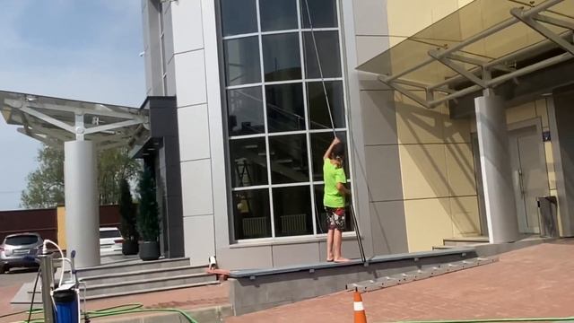 Моем окна и фасады с использованием установки подготовки воды штанга до 15 метров + леса 10 метров.