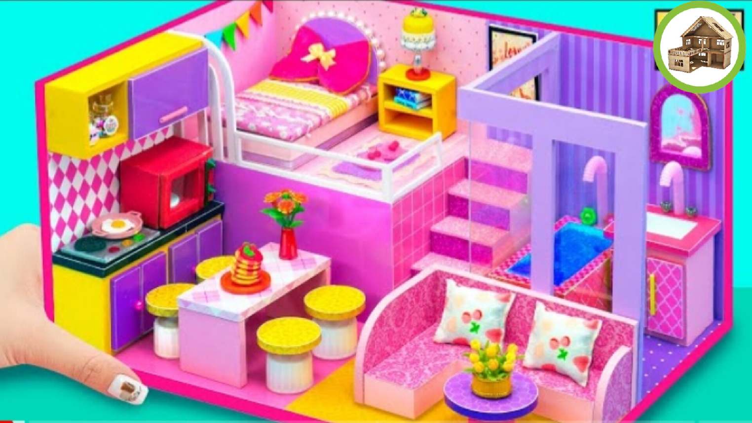 Миниатюрный Двух этажный трёх комнатный домик для семьи из картона /266