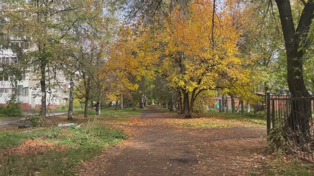 Уфа, прогулка по осени во дворе, встреча с дятлом