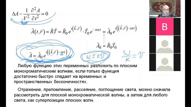 Лекция 2. Оптика. Крылов Игорь Ратмирович. 2022 г. Световые волны в прозрачной изотропной среде. Волновые уравнения для светового поля в прозрачной изотропной среде. Частные решения волнового уравнения. Параметры плоской монохроматической волны. Фазовая скорость волны.