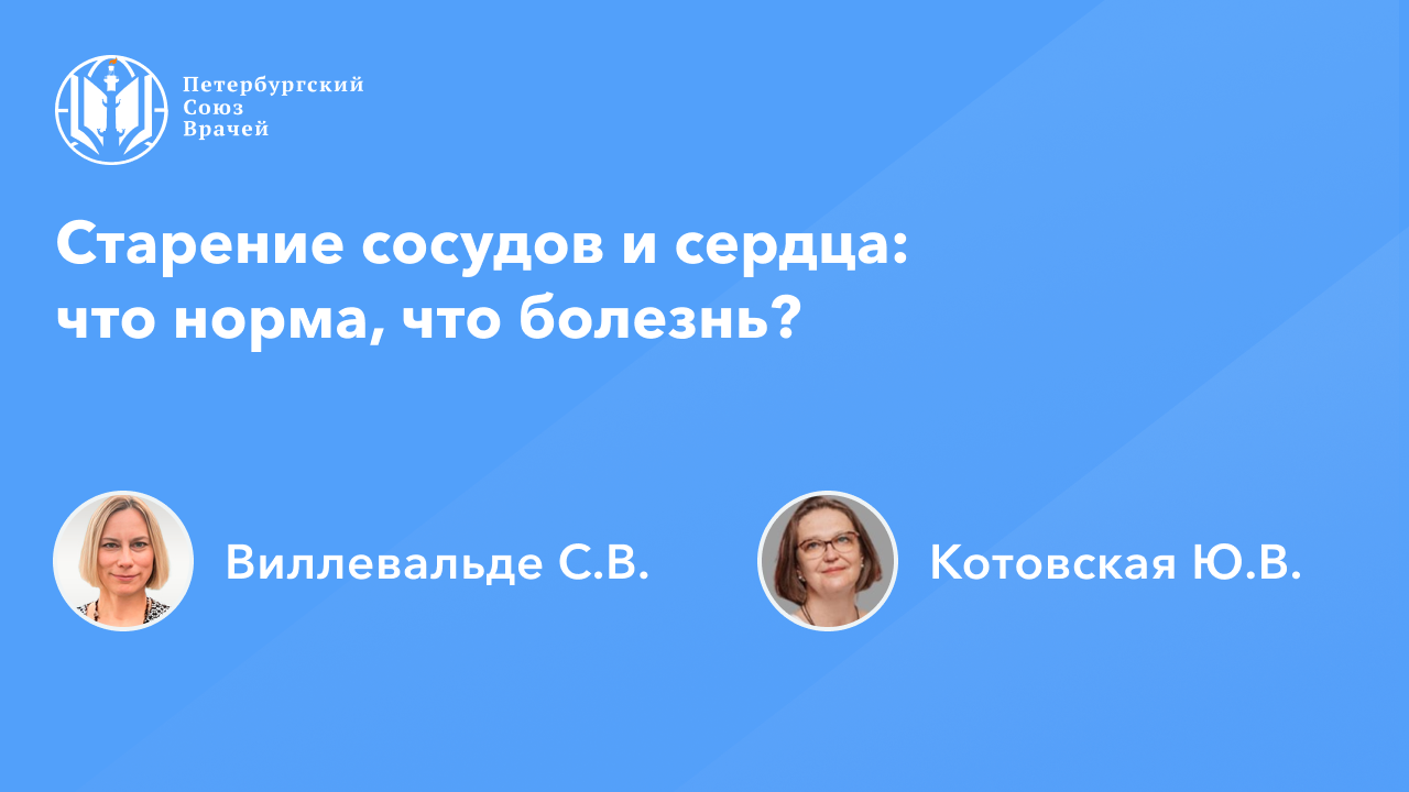 Старение сосудов и сердца: что норма, что болезнь? Сайт: www.spb.doctor Дата проведения: 24.01.2024, 20:00 Страница мероприятия: https://spb.doctor/i/24012420/ Программа: 1. 00:03:15 Старение сосудов и сердца: что норма, что болезнь? Виллевальде Светлана Вадимовна, Котовская Юлия Викторовна 2. 01:37:13 Контроль факторов сердечно-сосудистых рисков у пациентов старших возрастных групп. Котовская Юлия Викторовна, Виллевальде Светлана Вадимовна 3. 02:16:40 Ответы на вопросы О семинаре: Старение сердечно-сосудистой системы может протекать по физиологическому и патологическому типу, этот процесс поддаётся регуляции и управлению. В рамках онлайн-семинара будут представлены эпидемиология, патофизиология и проявления возрастных изменений сердечно-сосудистой системы, будут освещены ключевые факторы, оказывающие влияние на темп и выраженность их проявлений, рассмотрены современные стратегии профилактики и терапевтической коррекции сердечно-сосудистого старения.