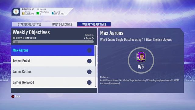 In this FIFA 19 Ultimate Team video, I will be talking to you about how to complete the new EFL awards weekly objectives. Some of these cards look very good with the main two Collins and Aarons which creates a good reason to go out and do these objectives. Compared to other weekly objectives these are a lot easier to complete which is a good step forward to EA Sports making weekly objectives better in the future so more of us can complete them if we don't have lots of spare time during the week. ► Subscribe: https://www.youtube.com/channel/UCRhk-jMkhRN6E3ZK5TwE9oQ?sub_confirmation=1 ► Twitter: https://twitter.com/FUTMentor ► Instagram: https://instagram.com/FUTMentor #FIFA19 #FUT19 #EFL