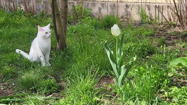 В цвету тюльпанов. Cats and tulips