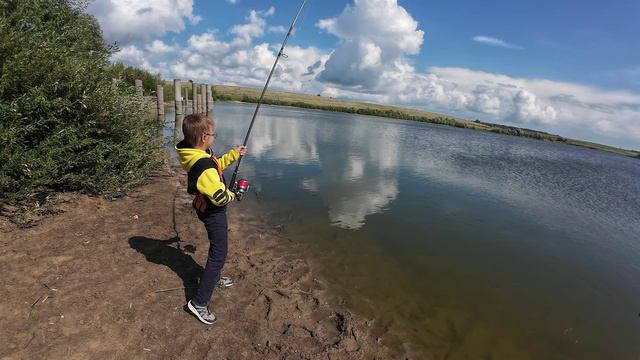 Паренек умело вываживает крупную рыбу