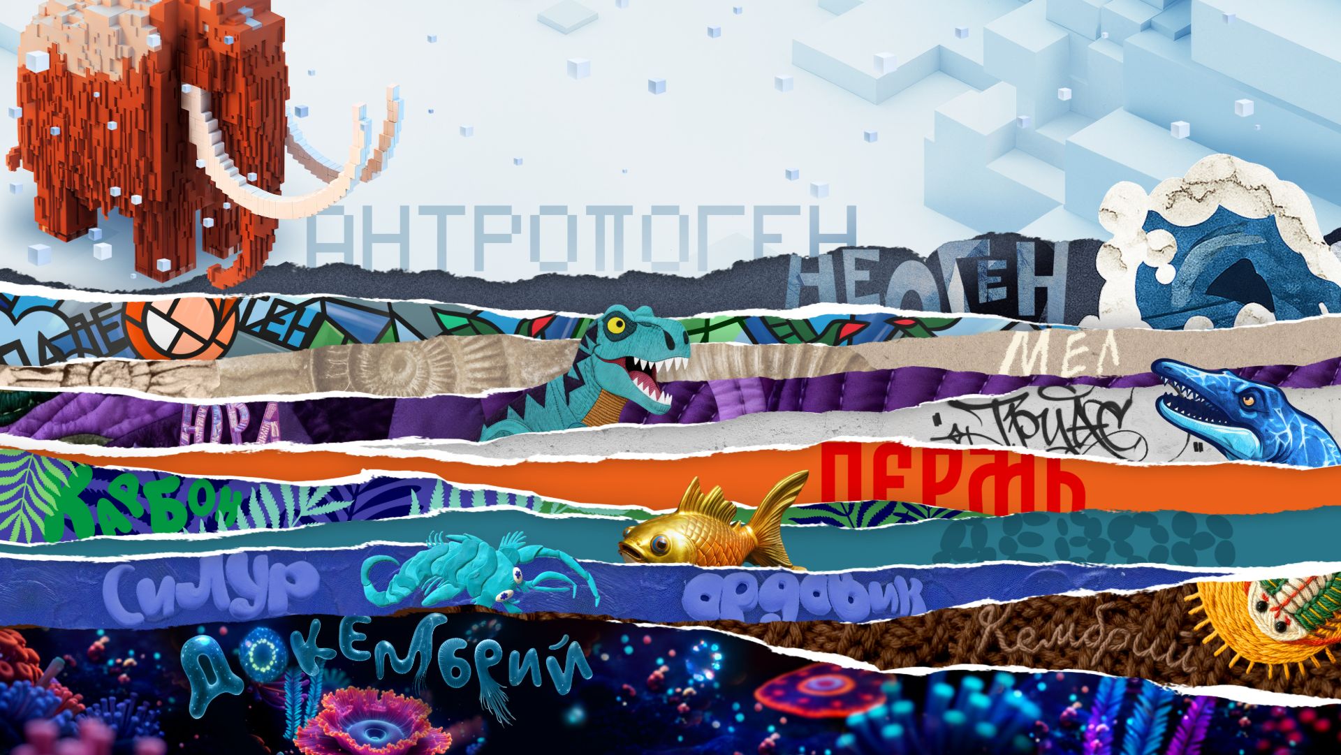 «Газпром нефть» вместе с дизайнерами и студентами Школы дизайна Высшей школы экономики создала арт-проект, который через современные художественные техники раскрывает этапы геологической истории Земли. Проект объединяет научную экспертизу геологов компании и творческий подход дизайнеров.