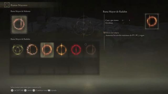 Aqui vemos el efecto que tiene cada una de ellas. Malenia: Después de recibir daño, si atacamos nos curamos ese daño. Rykard: Al derrotar a un enemigo nos curamos.