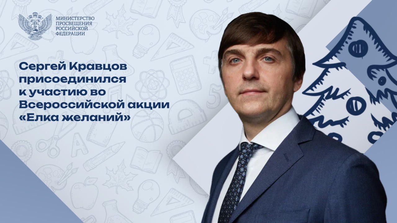 Сергей Кравцов принял участие в новогодней акции «Елка желаний». Министр просвещения пообещал выполнить новогоднее желание Даниила из Оренбургской области и подарить ему аэрохоккей. Кроме того, министр обещал показать Ангелине из Свердловской области Московский зоопарк. С наступающим Новым 2024 годом! Пусть сбываются мечты!