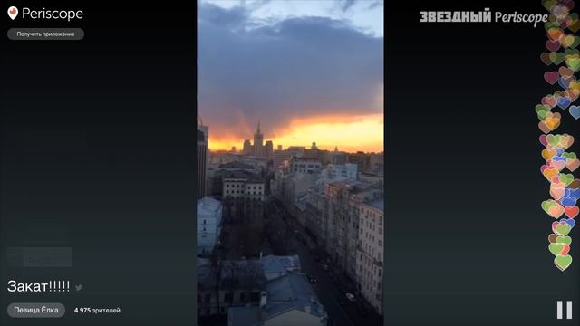 Певица Ёлка - "Закат" - перископ трансляция 20.04.2016 Подпишись на Звездный перископ - https://goo.gl/aZwhgM Звездный Periscope - это перископ трансляции звезд шоу-бизнеса и известных медийных людей. У нас на канале вы можете посмотреть перископ трансляции онлайн любимой звезды, а также просмотреть архив видео перископ трансляций. Подписывайтесь на "Звездный Перископ" в соц. сетях: ВК - https://vk.com/starperiscope Twitter - https://twitter.com/starperiscopetv