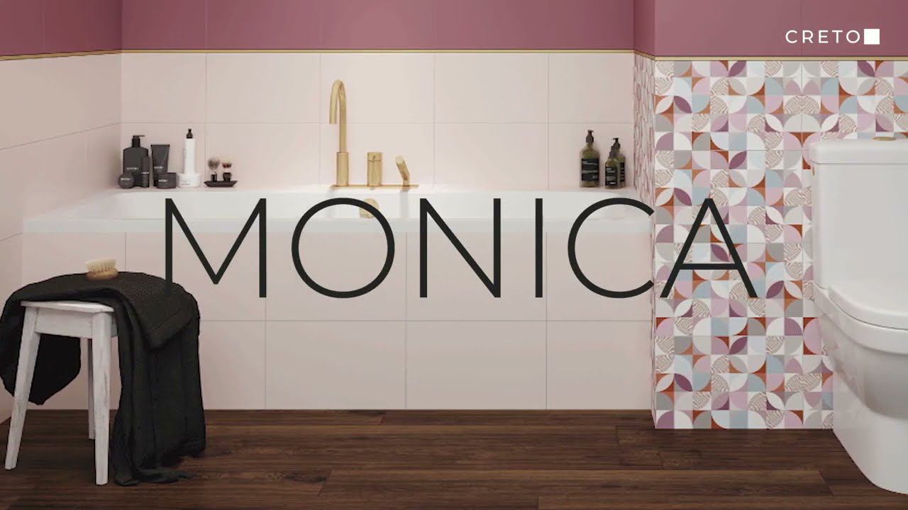 Керамическая плитка CRETO Коллекция Monica https://plitkazelenograd.ru/magazin/product/creto-monica Нежная и притягательная, коллекция Monica — три немного припыленных ягодных оттенка в качестве однотонной базы, а также три варианта декора, в которых нашли свое место все те же ягодные тона. Особого внимания заслуживает нежный и воздушный декор с мелкими переливающимися бусинами, образующими дугообразный принт. Его можно выкладывать как горизонтально, визуально расширяя пространство помещения, так и вертикально - создавая эффект высокого потолка.