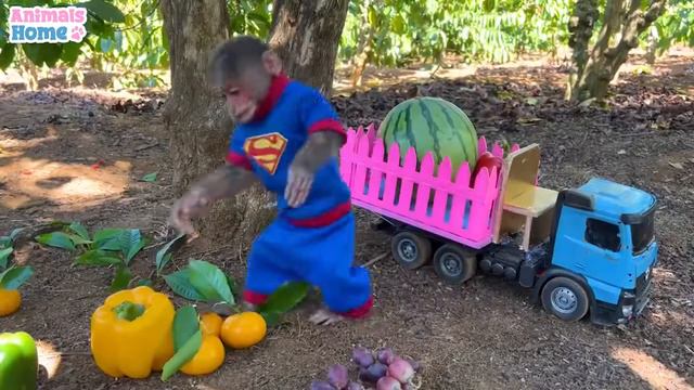 Умная обезьянка BiBi идёт собирать фрукты,чтоб съесть их с Эми