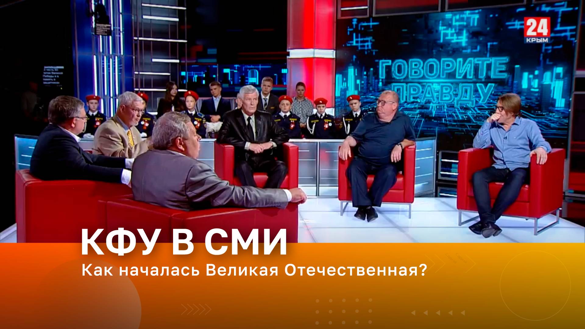 Телеканал «Крым 24». В эфире – профессор кафедры истории России КФУ им. В.И. Вернадского Андрей Ишин, директор ИММиД КФУ им. В.И. Вернадского Александр Мащенко Тема эфира – Как началась Великая Отечественная?