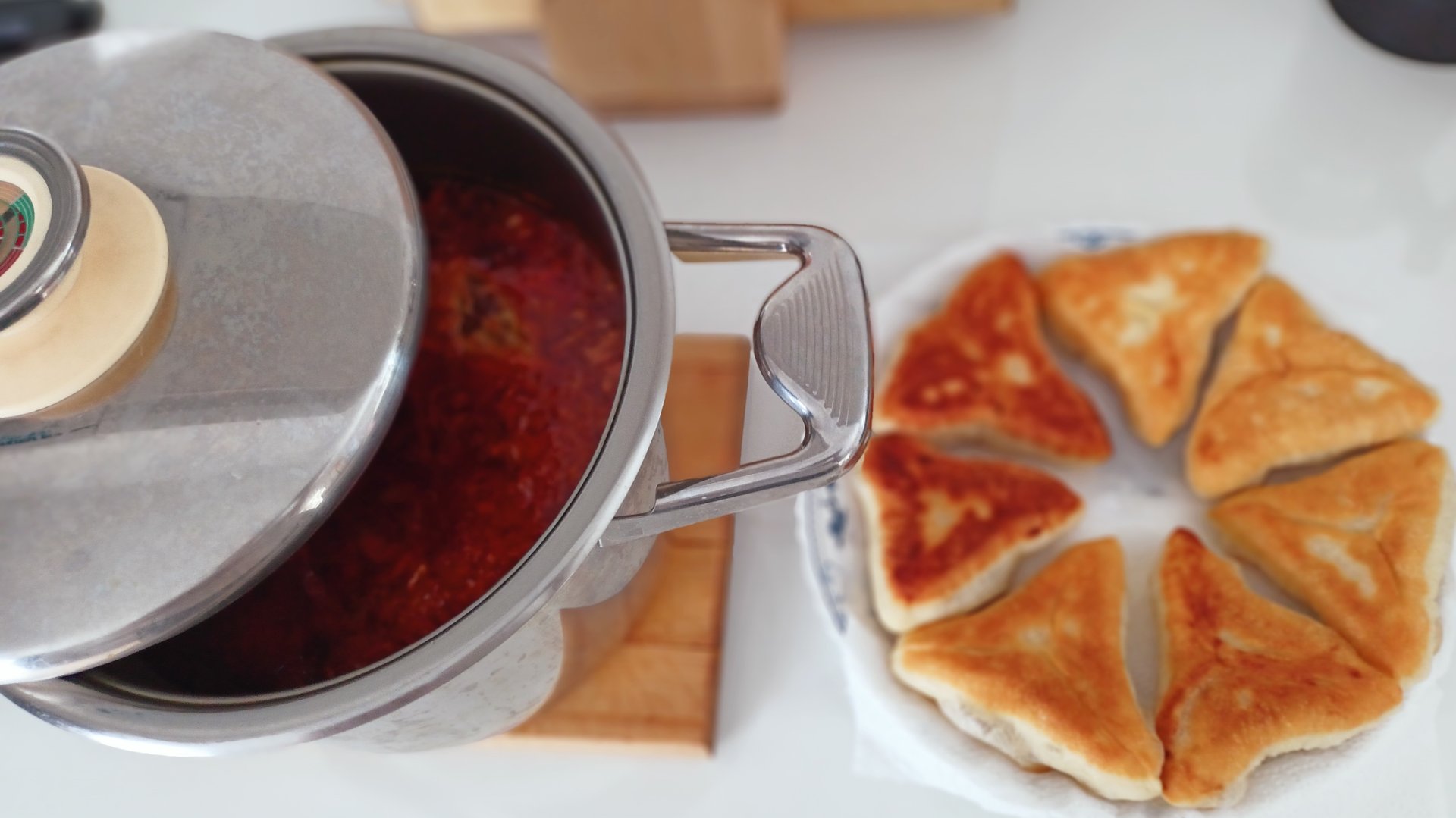 Добрый день, друзья! Сегодня на обед борщ и беляши. Что ещё нужно для счастья?