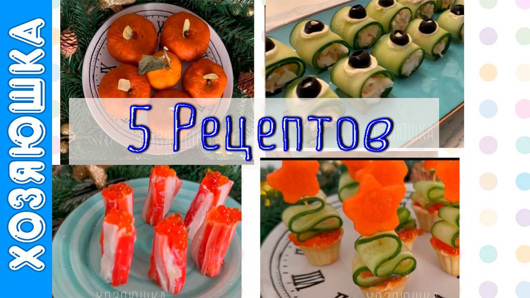 Марафоны по наведению ПОРЯДКА НАВСЕГДА: https://t.me/HOZIAIUSHKA_bot?start=nerushimui_poryadok 🔹 Салат «Мандаринка» Ингредиенты: Морковь Грибы Лук Картофель Яйцо Сыр Чеснок Для заправки: Сметана Горчица Лимонный сок Перец Для украшений: Гвоздика Лавровый лист 🔹Закуска «Глаз Змеи» 🐍 Ингредиенты: Огурец Творожный сыр Крабовые палочки Чеснок Красная икра 🔹Закуска «Ёлочки» Ингредиенты: Тарталетки Творожный сыр Красная икра Огурец Морковь 🔹Закуска «Рождественские свечи» Ингредиенты: Крабовые палочки Творожный сыр Огурец Чеснок Красная икра 🔹 Роллы «под шубой» Ингредиенты: Сельдь- ½ Свёкла – 2 шт. Картофель – 3 шт. Морковь – 1 шт. Яйца – 2 шт. Листья салата – 2 шт. Домашний майонез – 200г. Где меня можно найти: Хозяюшка в Телеграм https://t.me/hoziaiushka Хозяюшка на YouTube : https://www.youtube.com/c/HOZIAIUSHKA Хозяюшка в Дзен: https://zen.yandex.ru/hoziaiushka Хозяюшка ВКонтакте https://vk.com/hoziaiushka Хозяюшка на Rutube : https://home.strannik-j.org/u/hoziaiushka/ Rutube Алёна Стихарёва: https://home.strannik-j.org/u/stiharyova/ по вопросам сотрудничества и рекламы: stix05@mail.ru С любовью, 💜💜💜 Алёна Стихарёва Весь музыкальный контент, использующийся в видео на данном канале, размещен на основании лицензии Creative Commons 4.0 (https://creativecommons.org/licenses/by/4.0/).