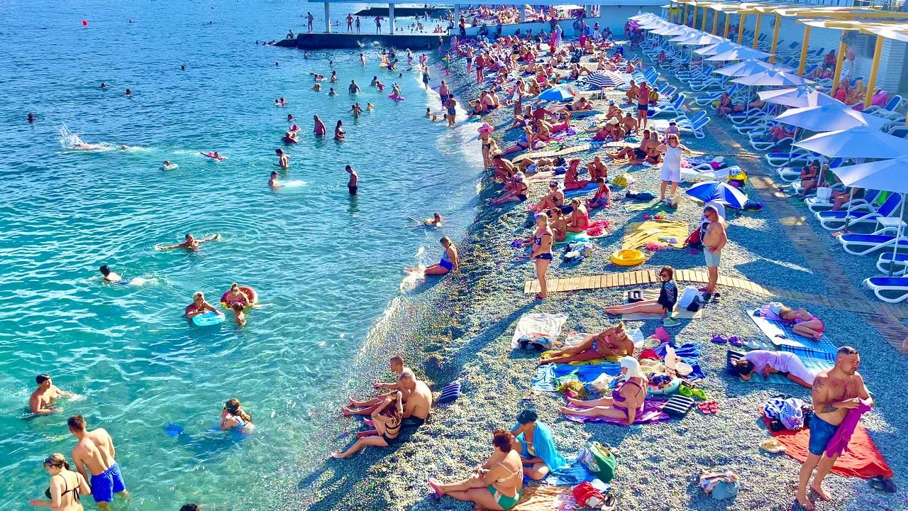 ЯЛТА сегодня. СЕЗОН в РАЗГАРЕ. ОБСТАНОВКА на пляже. МАССАНДРОВСКИЙ ПЛЯЖ, ВАН ГОГ. КРЫМ отдых 2024