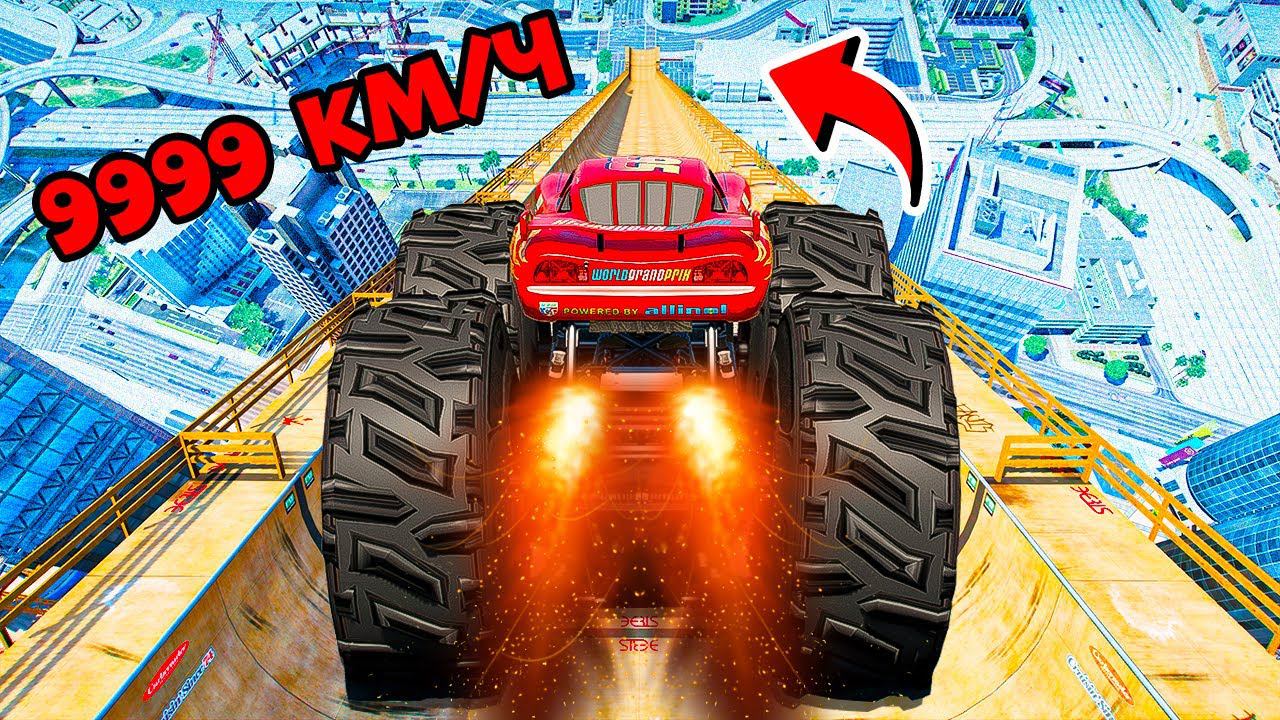 СПУСК БЕЗ ТОРМОЗОВ НА ОГРОМНОМ МОЛНИИ МАКВИН ПО ТРАМПЛИНУ В ГТА 5 МОДЫ! ЭКСПЕРИМЕНТ GTA 5 МОД