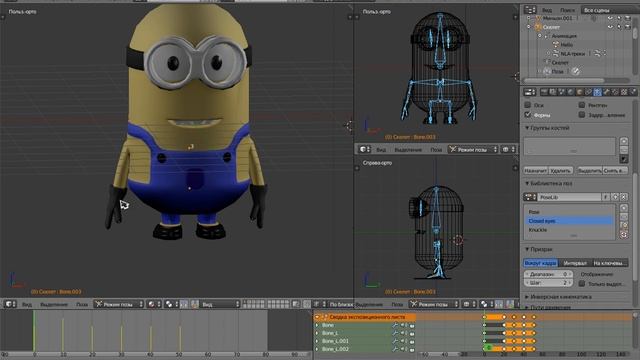 3d модель миньона, скелет, анимация.