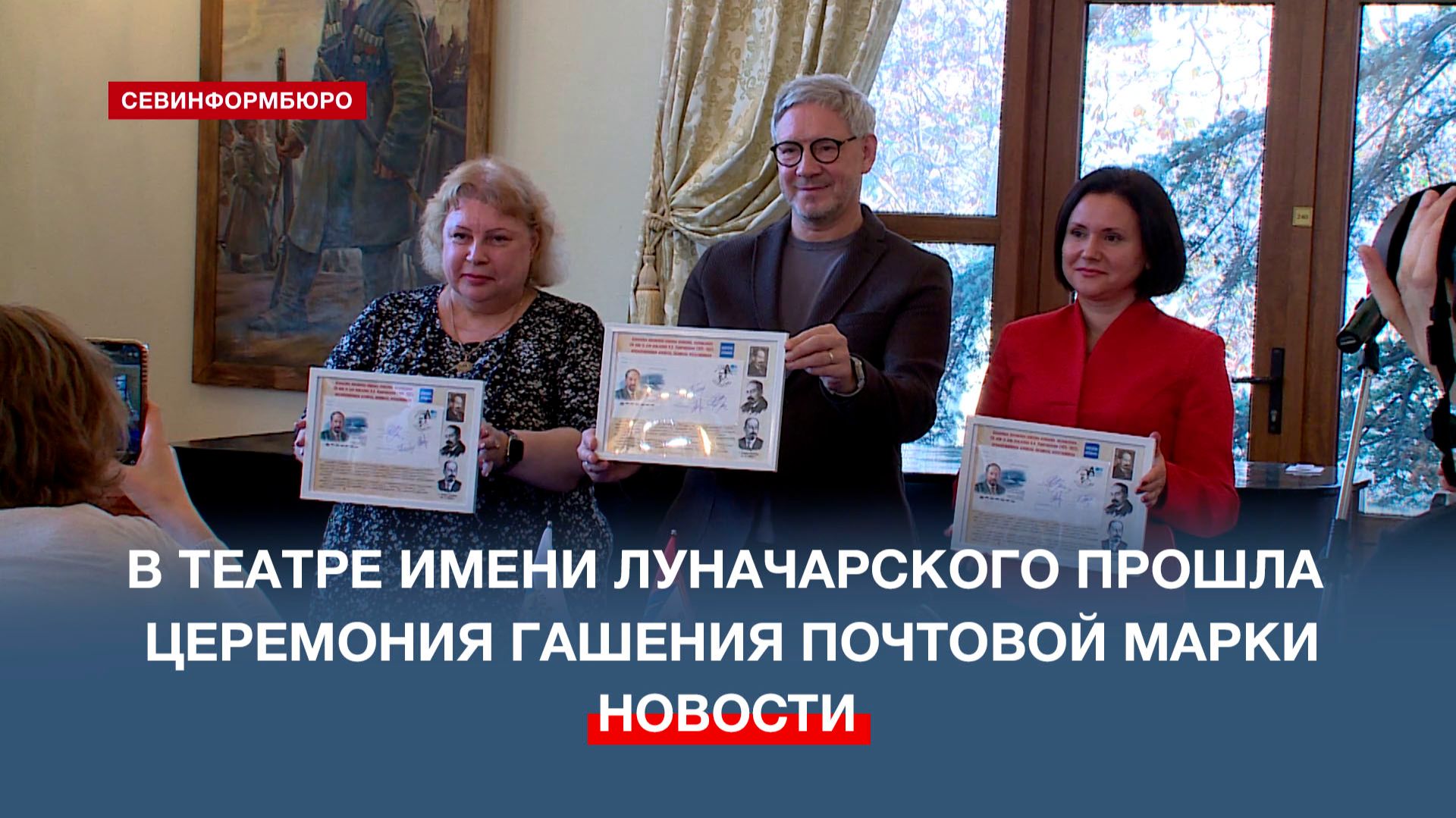 В Севастопольском академическом драматическом театре имени Анатолия Васильевича Луначарского прошла торжественная церемония гашения почтовой марки, посвящённой 150-летию со дня рождения выдающегося советского государственного деятеля, писателя, драматурга, чьё имя театр носит с 1921 года. Традиционно для церемонии был изготовлен специальный почтовый штемпель с указанием даты гашения. С его помощью поставили специальный оттиск, далее каждый конверт подписали участники церемонии, в числе которых представитель «Почты Крыма», директор театра Инна Конохова и художественный руководитель Григорий Лифанов. Подписывайтесь на наш Телеграм-канал: https://t.me/nts_novosti Смотрите новости Севастополя и Крыма на сайте НТС: http://nts-tv.com В нашей группе "ВКонтакте": https://vk.com/ntssevastopol На странице в "Одноклассниках": https://ok.ru/ntssevastopol