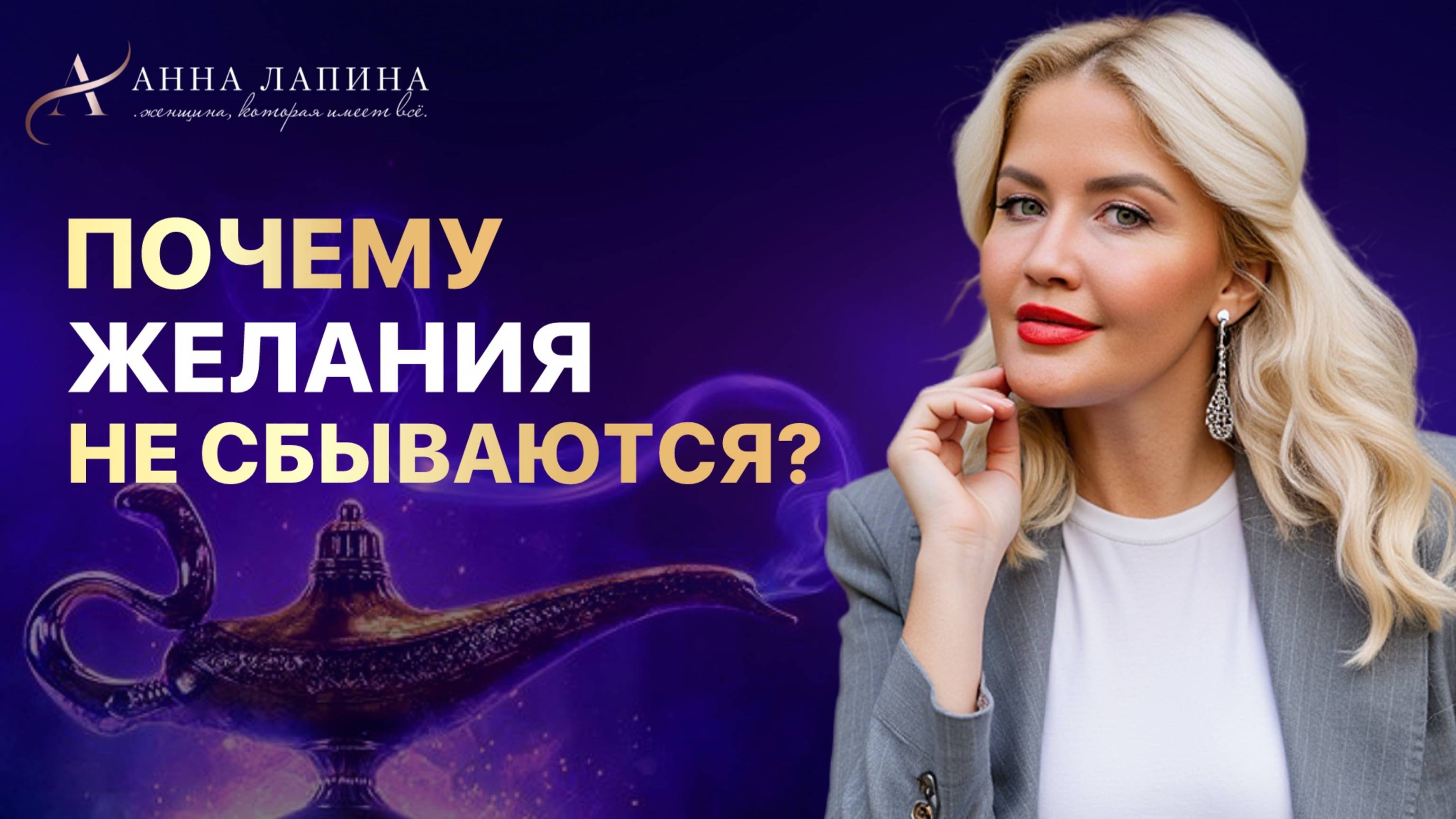 ❤️Курс-бестселлер «Женщина, которая имеет всё 2.0». Старт 31 июля ➤ https://clck.ru/3NKizX Новый уровень роста во всех сферах вашей жизни. Активируйте свою глубинную самоценность и выйдите на новый уровень жизни! 💥Мощные техники для работы с бессознательным в приложении SuperU ➤ https://clck.ru/3NKj2U 🔥Нейро-настрой на богатство и успех ➤ https://clck.ru/3NKj6f 💎Практика «Бриллиант» для поднятия самооценки ➤ https://clck.ru/3NKj4B 💰Самодиагностика финансовой ёмкости ➤ https://clck.ru/3NKj7E У нас у всех есть определённые желания. Какие-то желания сбываются, а какие-то нет. Почему это происходит, поговорим в новом видео. Смотрите его до конца и пишите свои вопросы в комментариях❤️ 🎬Тайм-коды видео: 00:00 Почему не сбываются желания 01:22 Как научиться управлять эмоциональным телом 02:07 Как ставить свои желания и цели 03:08 Формулировки и Программы на ментальном и эмоциональном плане 04:50 Исцеление собственных желаний ==================================================== 💥Подписывайтесь на мои социальные сети: ➤ Telegram: https://t.me/annalapina3 ➤ Вконтакте: https://vk.com/lapina.club ➤ YouTube-канал: https://www.youtube.com/@anna_lapina ➤ Дзен: https://dzen.ru/annalapina1 ==================================================== Приветствую Вас на моём канале! Меня зовут Анна Лапина. Я — Амбассадор счастливых женщин, дипломированный психолог и ER-терапевт. Автор ER-методики работы с подсознанием, более 20ти курсов по женской трансформации, 200 медитаций на все сферы жизни и методик трансформации сознания. Я помогаю женщинам со всего мира реализовывать свой потенциал во всех сферах жизни. ==================================================== #анналапина #окситоциноваяженщина #женственность #женскаямягкость #женщинамагнит #бессознательное #программы #самооценка #самоценность #методикабыстрыхизменений