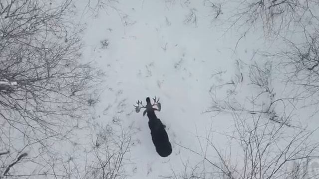 В Канаде дрон запечатлел редчайшие кадры, когда лось сбросил сразу оба рога.