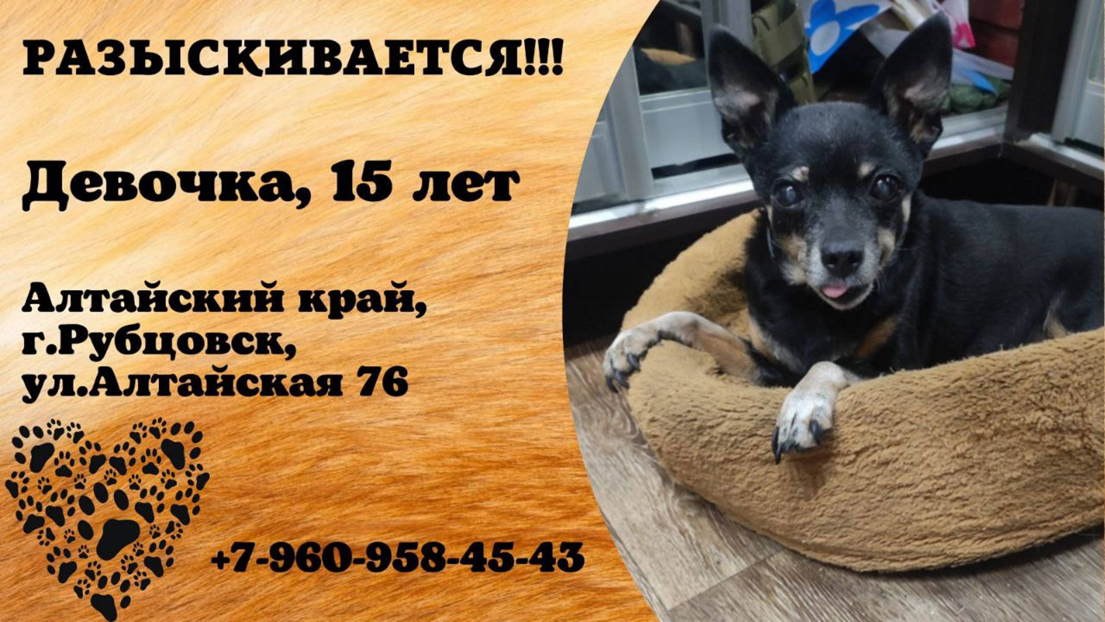 Пропала собака! Девочка, 15 лет. Алтайский край, г. Рубцовск