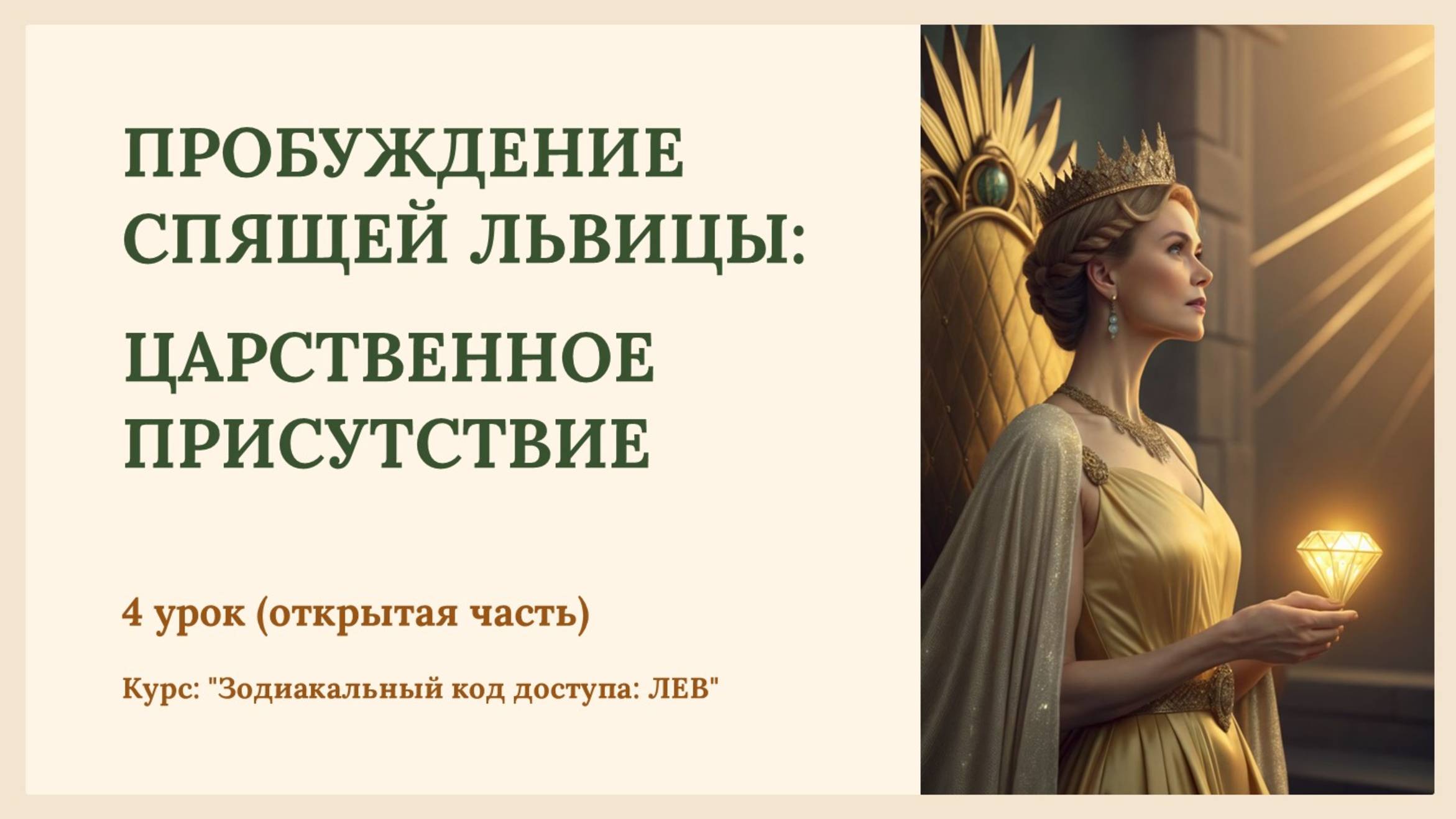 "ПРОБУЖДЕНИЕ СПЯЩЕЙ ЛЬВИЦЫ" 4 НЕДЕЛЯ: ЦАРСТВЕННОЕ ПРИСУТСТВИЕ