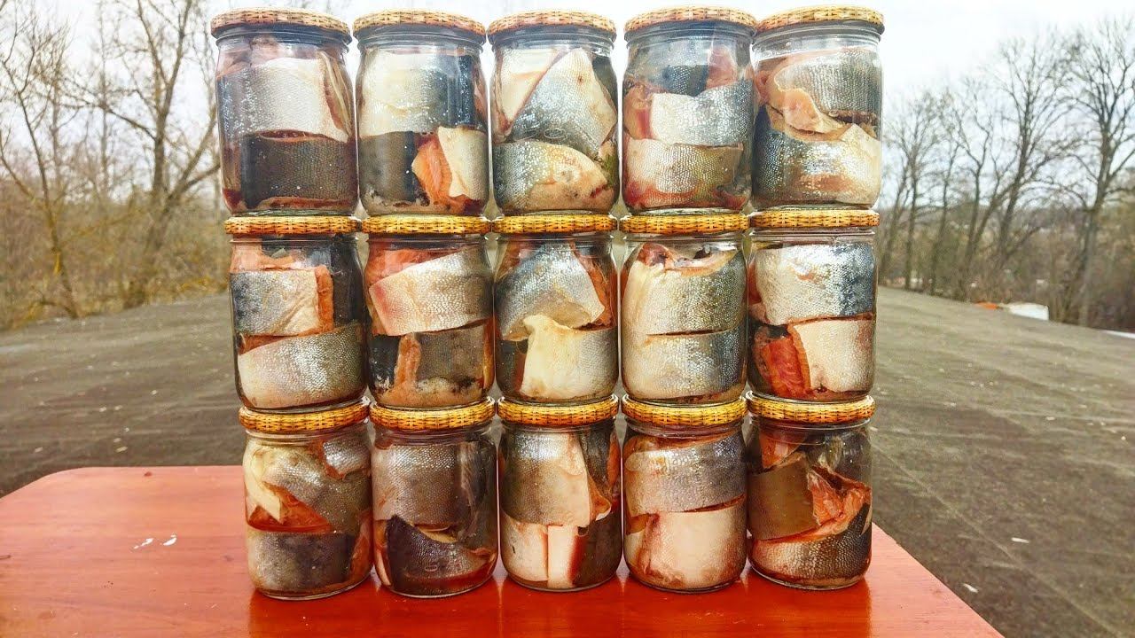 Горбуша в масле,приготовленная в автоклаве.