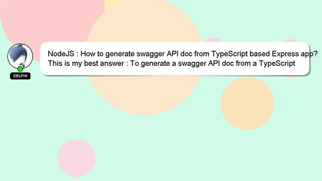 NodeJS : How to generate swagger API doc from TypeScript based Express app? To Access My Live Chat Page, On Google, Search for "hows tech developer connect" So here is a secret hidden feature I promissed to tell you. This is a YouTube's feature which works on Desktop. First, Make sure the video is currently in playing mode. After that, type the word 'awesome' on your keyboard. Your YouTube progress bar will transform into a flashing rainbow. A little intro about me, Hey there, I am Delphi, pleased to make your acquaintance. Allow me to support you in answering your questions. NodeJS : How to generate swagger API doc from TypeScript based Express app? Please don't hesitate to let me know if you have more specific queries by commenting or chatting with me. Please feel free to leave a comment below if you have an answer or insights on the answer. Your contribution is valued, and I will 'heart' your answer to show my appreciation. Express from swagger How app? TypeScript generate doc NodeJS API : based to