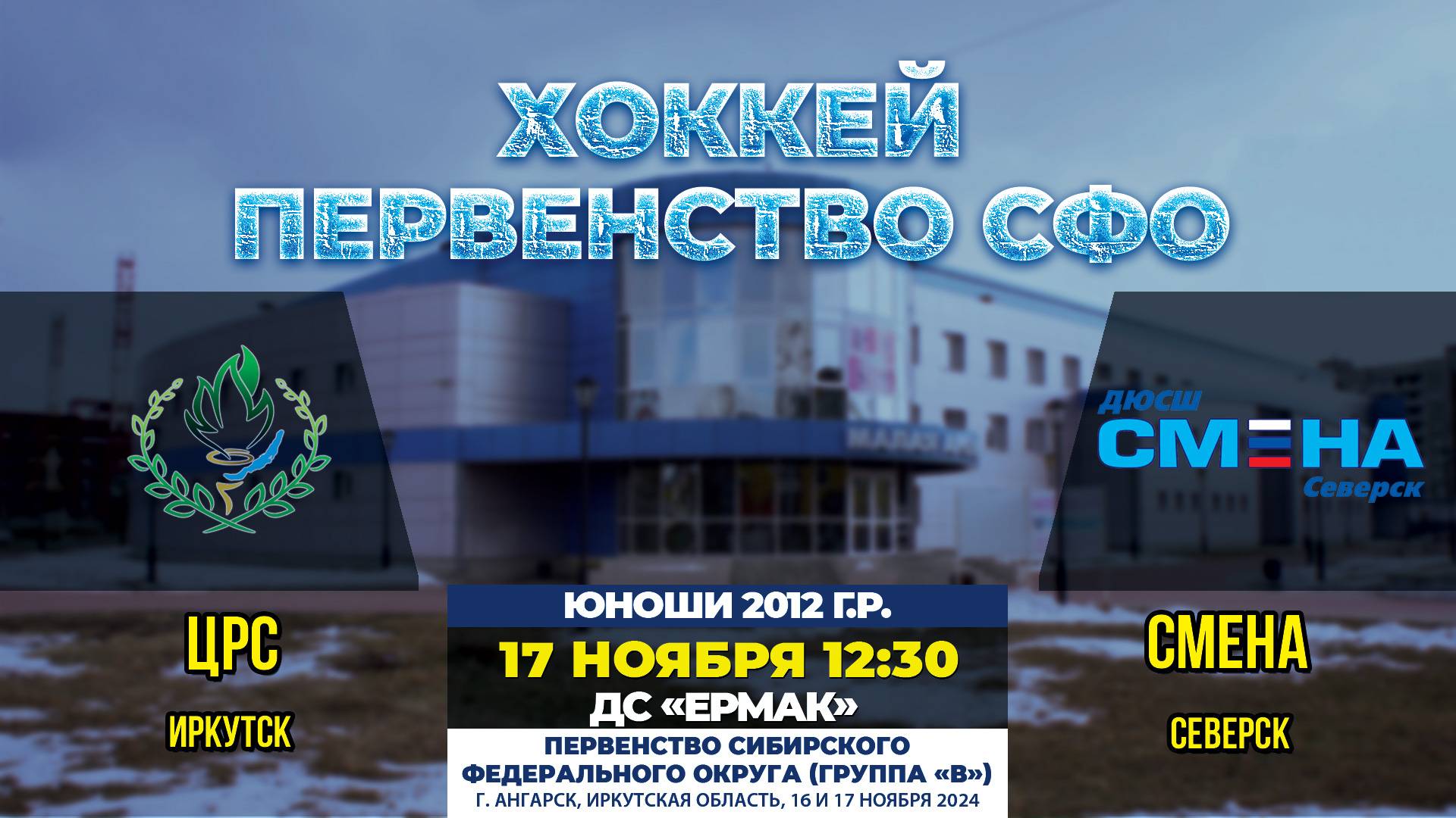 Матч между командами «ЦРС» (Иркутск) – «Смена» (Северск) в рамках первенства СФО по хоккею среди юношей 2011 г.р. (группа «Б»). г. Ангарск, малая арена ДС «Ермак» 17 ноября 2024 г., начало в 12-15