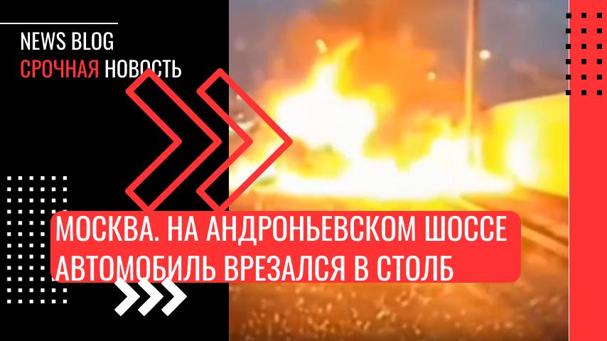 Москва.На Андроньевском шоссе автомобиль врезался в столб и загорелся. На месте работают пожарные. Предварительно, погибли два человека, еще один пострадал. видео шот