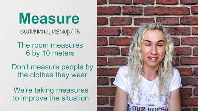 🔥🔥СЛОВАРЬ К УРОКУ MEASURE - мера, величина, размер, единица измерения; измерять, мерить tape measure - мерная рулетка security measure - мера безопасности measure distance - измерять расстояние measure length/width/hight - измерять длину/ширину/высоту 🤓УПРАЖНЕНИЕ К УРОКУ - переведи на английский язык Давай измерим этот стол Не волнуйся, это временная мера безопасности Жду твою домашку😁🤓 У тебя все получится!🏆 Я верю в тебя!👍 -------------------------------------------- ПОДПИСЫВАЙСЯ на канал! 🔔 👍 И ты всегда будешь в курсе новой полезной информации, новых актуальных тенденций в английском языке! 🎯СЕРИИ УРОКОВ НА КАНАЛЕ: 🔷 АУДИРОВАНИЕ с НУЛЯ - https://www.youtube.com/playlist?list=PLA2wJNszfnj1E3HezmtFXlFEahYMFckN0 🔷 КУРС АУДИРОВАНИЯ для начального и среднего уровня https://www.youtube.com/playlist?list=PLA2wJNszfnj1zIwtzlRsRXfCGh6AGe1kv 🔷 АНГЛИЙСКИЙ ДЛЯ ПУТЕШЕСТВИЙ - Как не растеряться в городе, аэропорту, ресторане, магазине https://www.youtube.com/playlist?list=PLA2wJNszfnj0qE0t7zjF9W7ziiEa2_yVQ 🔷 1 МИНУТА АНГЛИЙСКОГО В ДЕНЬ - актуальные фразы и слова для свободного общения, примеры, варианты перевода, задания https://www.youtube.com/playlist?list=PLA2wJNszfnj1NE-NdJ7DKccUE-EHIJqMh 🔷РАЗГОВОРНАЯ ПРАКТИКА АНГЛИЙСКОГО, быстро и эффективно учимся разговаривать на английском https://www.youtube.com/playlist?list=PLA2wJNszfnj2GQMTwVHekuTlXTTYkNdhL 🔷ГОВОРИМ НА АНГЛИЙСКОМ С НУЛЯ - практические уроки https://www.youtube.com/playlist?list=PLA2wJNszfnj29XHh3dNTnX5YjvsmSQq5a 🔷 МАРАФОН (ИНТЕНСИВ) по аудированию https://www.youtube.com/playlist?list=PLA2wJNszfnj1KDVaooVBAqlzQYDlQvF5S 🔷 АУДИРОВАНИЕ (продвинутый уровень) https://www.youtube.com/playlist?list=PLA2wJNszfnj3flCOlOg6lm15AmAoD9Ch- 🔷СЛОВАРЬ - ОНЛАЙН https://www.youtube.com/playlist?list=PLA2wJNszfnj1jq8UBPEJ50XwonCtnYwwX 🔷 НЕПРАВИЛЬНЫЕ ГЛАГОЛЫ https://www.youtube.com/playlist?list=PLA2wJNszfnj2P96RvwPYwOinUzU76tUyA 🔷 АНГЛИЙСКИЙ ПО ФИЛЬМАМ https://www.youtube.com/playlist?list=PLA2wJNszfnj2q2fF6w_S-1Z9JskCBbDM4 🔷 ПРОИЗНОШЕНИЕ, КАК ПРОИЗНОСИТЬ ПРАВИЛЬНО И РАЗЛИЧАТЬ НА СЛУХ ПОХОЖИЕ СЛОВА https://www.youtube.com/playlist?list=PLA2wJNszfnj0_adiob0iO0Hmi9JnazN8K 🔷 ПЕРЕВОДЫ ВЫСТУПЛЕНИЙ ИЗВЕСТНЫХ ЛЮДЕЙ https://www.youtube.com/playlist?list=PLA2wJNszfnj3nlmZWuq0LE60hYUjAW1g0 🔶🔶ДЛЯ ПУТЕШЕСТВИЙ - ПРОМОкод $39 НА АРЕНДУ ЖИЛЬЯ НА AIRBNB https://www.airbnb.ru/c/ffb9e4?currency=RUB 🔺🔺