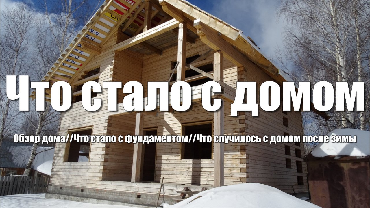Небольшой обзор дома из профилированного бруса построенного своими руками после зимы. Выявились проблемы с фундаментом. На фундаменте появилась трещины, соответственно треснул и цоколь. Смотрим насколько произошла усадка дома из дерева (бруса). Нужны ли скользячки при устройстве крыши. Какой профиль бруса выбрать, чтобы уменьшить вероятность появления трещин на брусе.