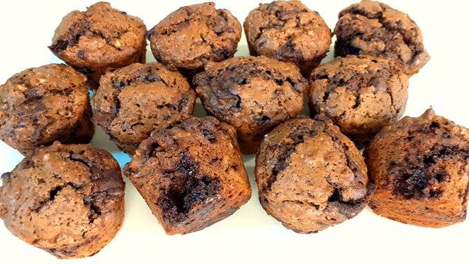 Рецепт шоколадно-кофейных Маффин с орешками: 1. Мука - 220 гр; 2. Сахар - 140 гр; 3. Разрыхлитель - 6 гр; 4. Яйца (средние) - 2 шт; 5. Сливочное масло (растопленное) - 60 гр; 6. Молоко (тёплое) - 190 гр; 7. Кофе растворимый - 12 гр; 8. Шоколад рубленный - 140 гр; 9. Орехи грецкие среднего помола - 140 гр; 10. Ванилин - 5 гр; 11. Корица - 5 гр; 12. Соль (мелкая экстра) - 3 гр __ Мой Телеграмм канал: https://t.me/sladkiimaster _ Поддержи канал: Юмани кошелёк: 4100 1546 2997 635 PayPal: dusiagrusha@gmail.com ___ Способ приготовления: В чашу с мукой добавить: разрыхлитель, соль, корицу, орехи грецкие, шоколад, сахар и ванилин. Всё перемешать до однородности. В другую чашу влить: тёплое молоко и всыпать кофе. Перемешать венчиком до растворения кофе. Добавить 2 яйца и перемешать венчиком одну минуту, до однородности. Добавить растопленное сливочное масло и перемешать одну минуту. В чашу с сухими ингредиентами, влить жидкий замес. Всё перемешать до однородности. Распределить тесто на 12 стаканчиков под маффины. И выпекать в духовке при 180С 20 минут. Готовность маффин проверить шпажкой. ________ Яйца средние, не мелкие 60-65 гр, каждое яйцо. Грецкие орехи мелко не растирать скалкой, досточно сделать средний помол. Шоколад также рубить ножом не в мелкую крошку, это способствует красивым трещинкам на маффинах. Стаканчики для маффин, имеют бумажную поверхность снаружи и глянцевую, гладкую внутри, это сделано специально для того, чтобы тесто не прилипало к внутренним стенкам стаканчиков. Они выше и плотнее, нежели обычные стаканчики, под кексы. Поэтому обычные стаканчики под капкейки сюда не подходят. Используйте стаканчики, высокие под маффины, с глянцевой поверхностью внутри. Если шпажка после выпекания, выходит из маффина с шоколадом, без теста, значит ваши маффины готовы. Так как горячие и тёплые маффины, внутри с жидким шоколадом. *Хранить маффины можно как в холодильнике, так и при комнатной температуре, тк в их составе отсутствует быстропортящийся крем.