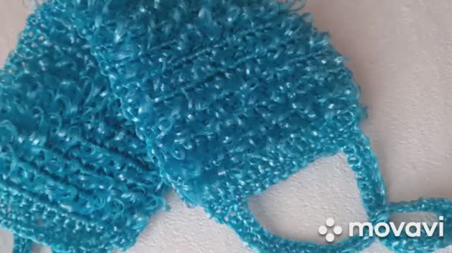 Мочалка двусторонняя с вытянутыми петлями.