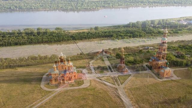 Ачаирский женский монастырь Честного Креста Господня, расположенный в Омской области, с высоты птичьего полета.