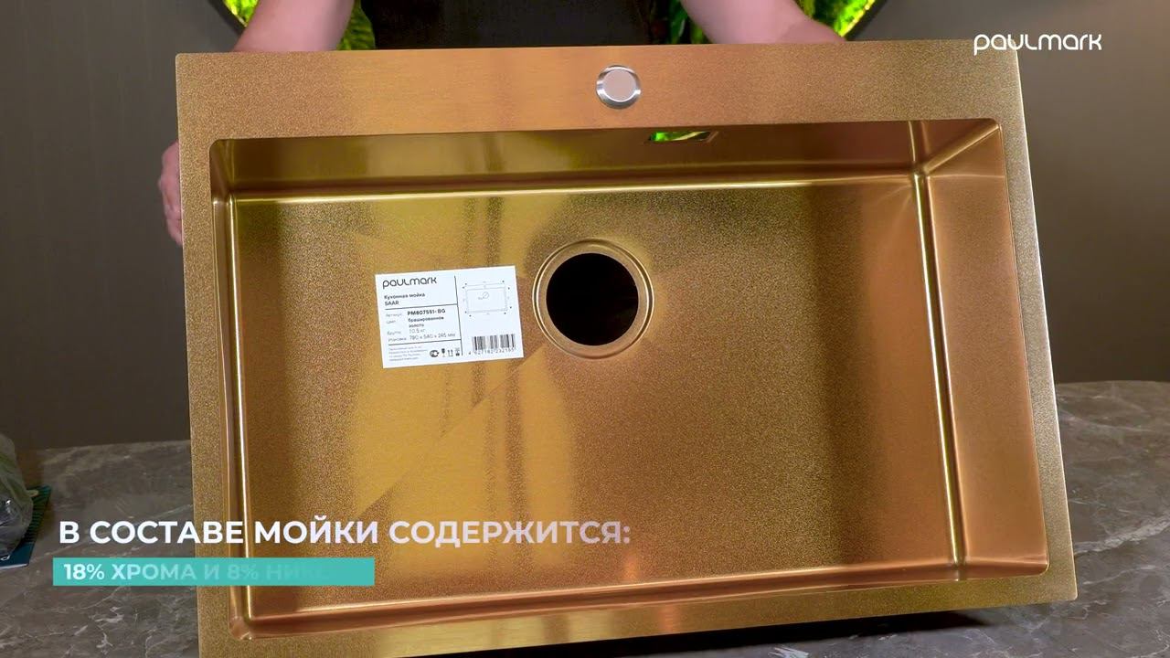 Мойка кухонная Paulmark Saar PM807551-BG 75 см, брашированное золото