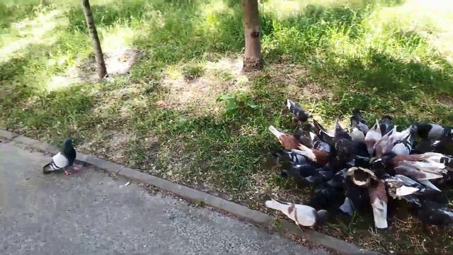 Голуби собрались чтобы поесть. Там было много крошек хлеба. Голуби всё подлетали и подлетали. #голуби #птица #птицыукраины #украинскиеголуби