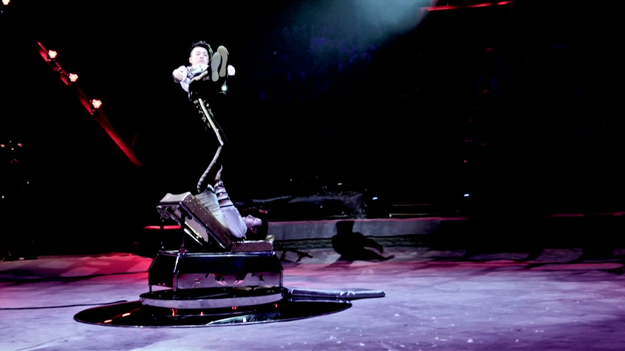 «Икарийские игры» - вид акробатики, в котором артисты жонглируют ногами, а вместо предметов подбрасывают друг друга.