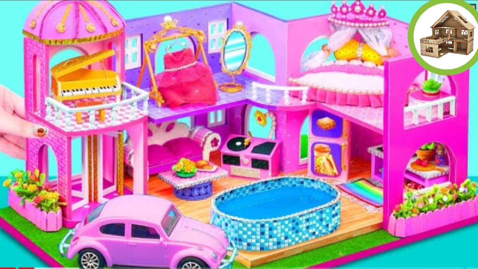 Как построить мега роскошный розовый замок с мега-бассейном | миниатюрный домик из кортона /120